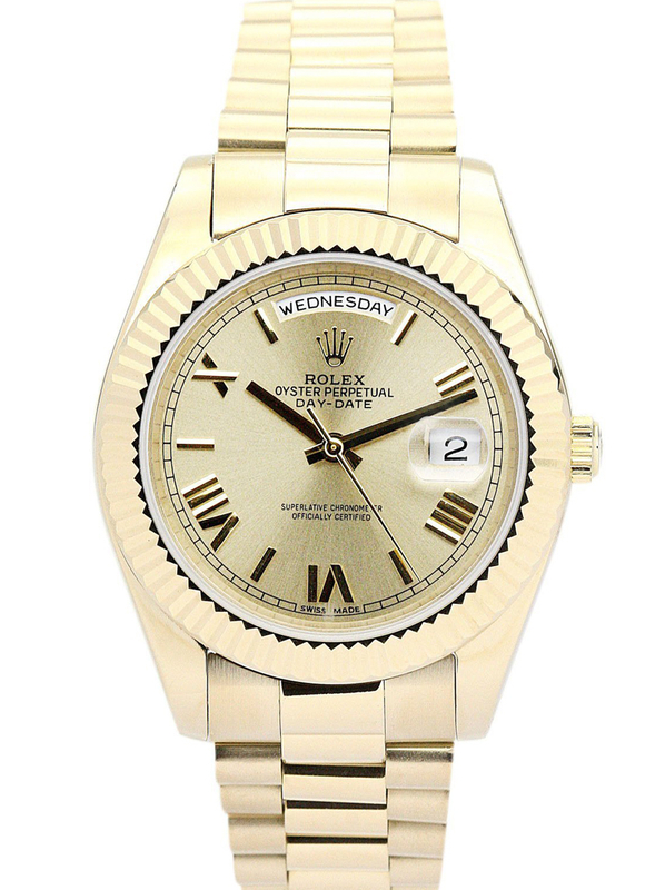You are here: Home » Products » Day-Date » Rolex Day-Date II 41mm Gold Dial 218238 $399.00