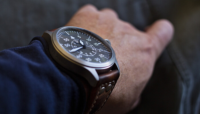 This 44 millimetre chronometer is made of fine steel and is equipped with a polished black ceramic bezel decorated with a white enamel diving scale. The buttons and dials are also made of polished black ceramic. The dials are decorated with laser engraved corrugated patterns. There is a calendar window at the 6 o'clock position.