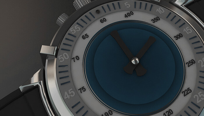 This 44 millimetre chronometer is made of fine steel and is equipped with a polished black ceramic bezel decorated with a white enamel diving scale. The buttons and dials are also made of polished black ceramic. The dials are decorated with laser engraved corrugated patterns. There is a calendar window at the 6 o'clock position.